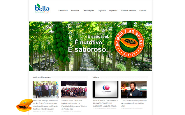 Bello Fruit Ampliamos o seu alcance na Internet. Análise gratuita do seu site Bello FruitEmpresa com mais de 35 anos no mercado, sendo a 2º maior exportadora de mamão do Brasil. Acesse aqui o site Projeto anterior Todos projetos Próximo projeto Quer receber novidades por email? Solicite a visita de um de nossos consultores, é sem custo! Mais alguns projetos Mostrar todos Radar58 Design e Programação Saiba mais Siriba Design, Programação + Face ADS Saiba mais ProtetoresBR Design e Programação Saiba mais Nutrimaq Design e Programação Saiba mais Assados Gislene Loja virtual com otimização para buscadores. Saiba mais Balanço Eventos Novo site com portfólio dos eventos e possibilidade de orçamentos. Saiba mais Via Lorran Desenvolvimento e Hospedagem. Saiba mais Móveis Brasil Site reformulado com show room virtual dos produtos. Saiba mais